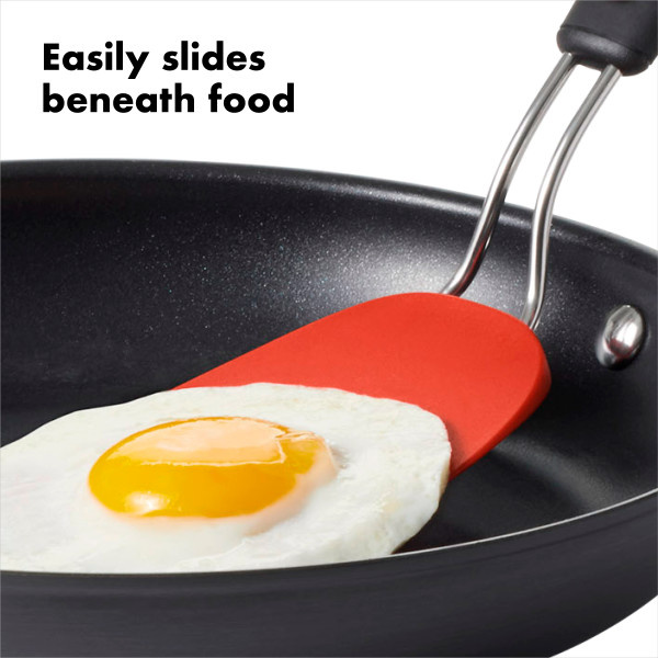 Flips delicate foods with ease, won't damage non-stick. Our Nylon Flexible Turner is perfect for flipping fragile foods while keeping them intact. The flexible nylon head easily slides beneath foods in sauté pans or on cookie sheets and is high heat resistant.